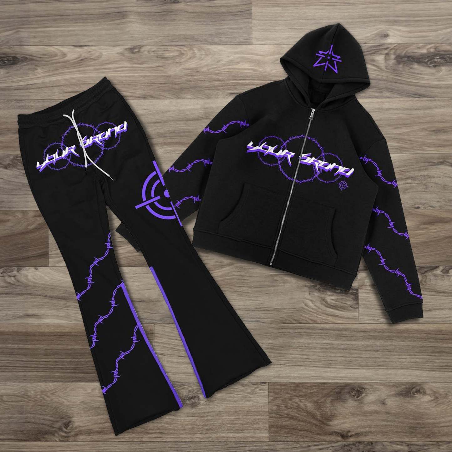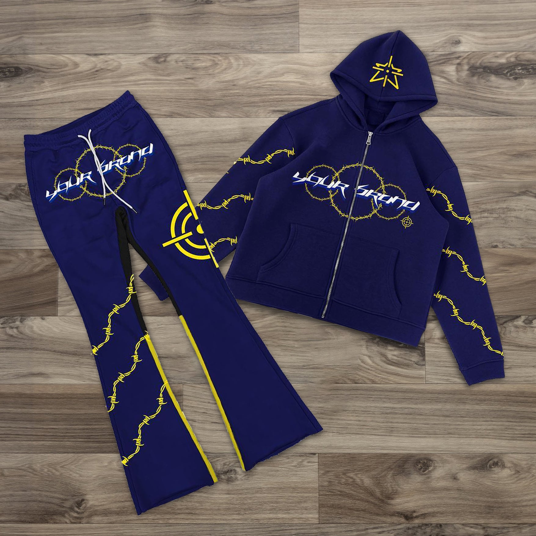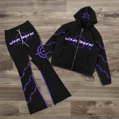 Casual Streetwear Zip Hoodie Two-Piece Set