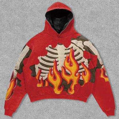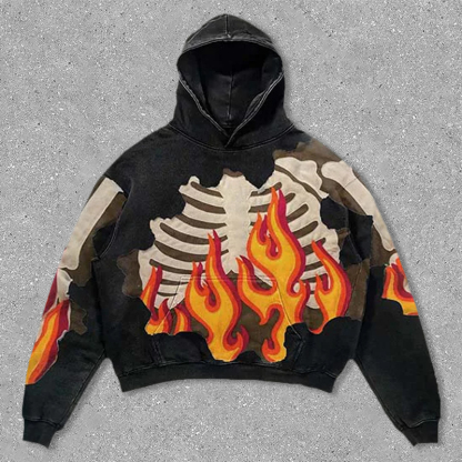 flame skeleton print hoodie