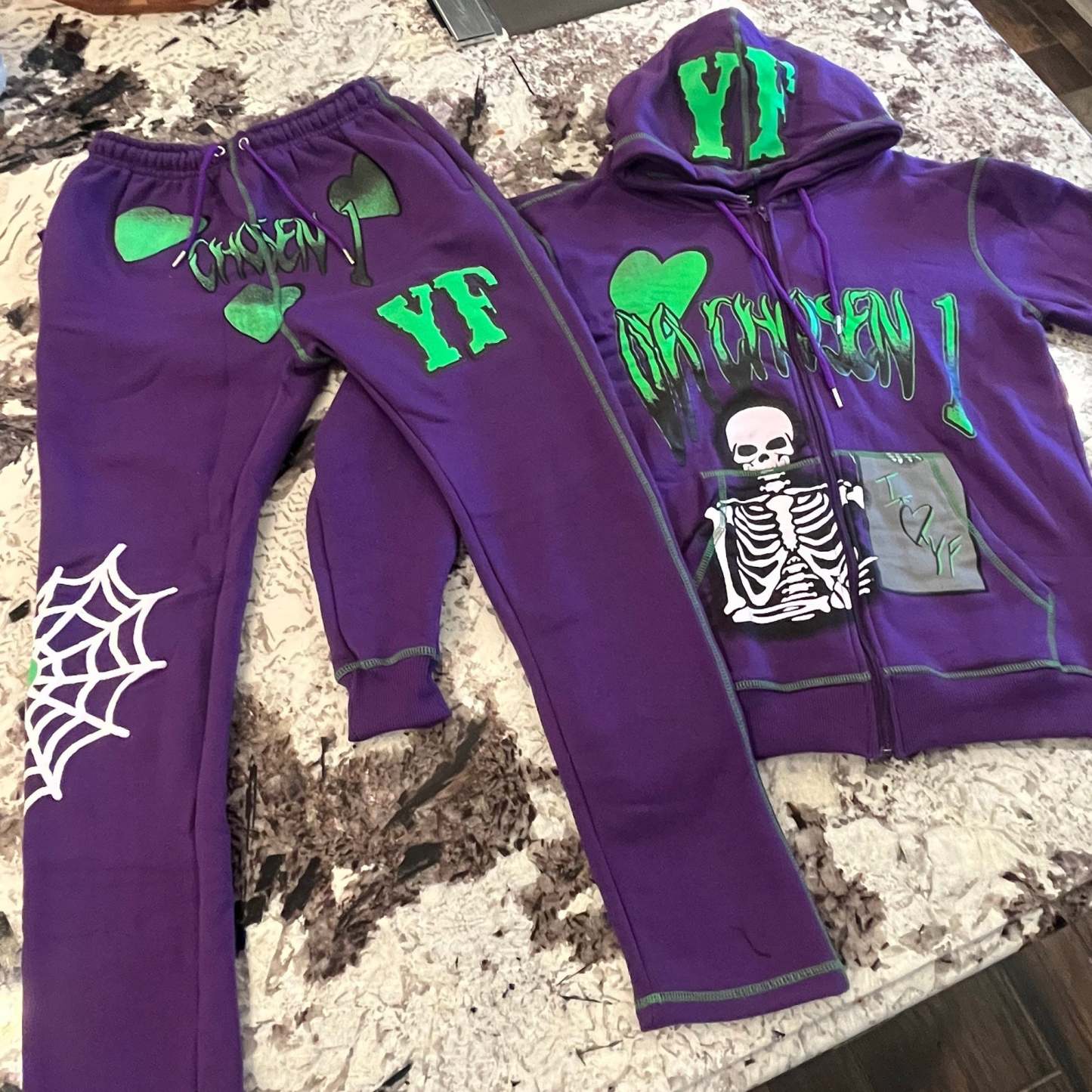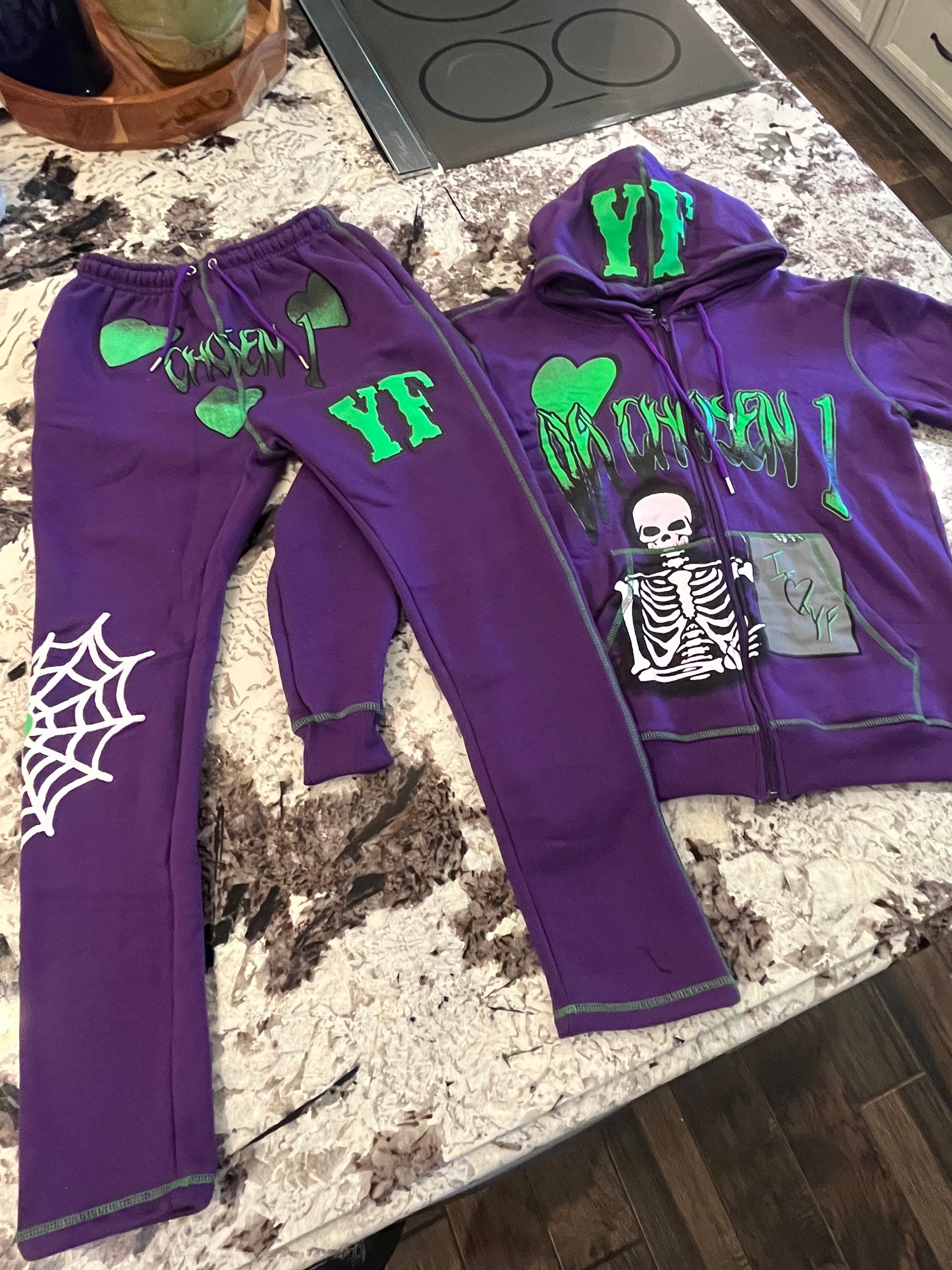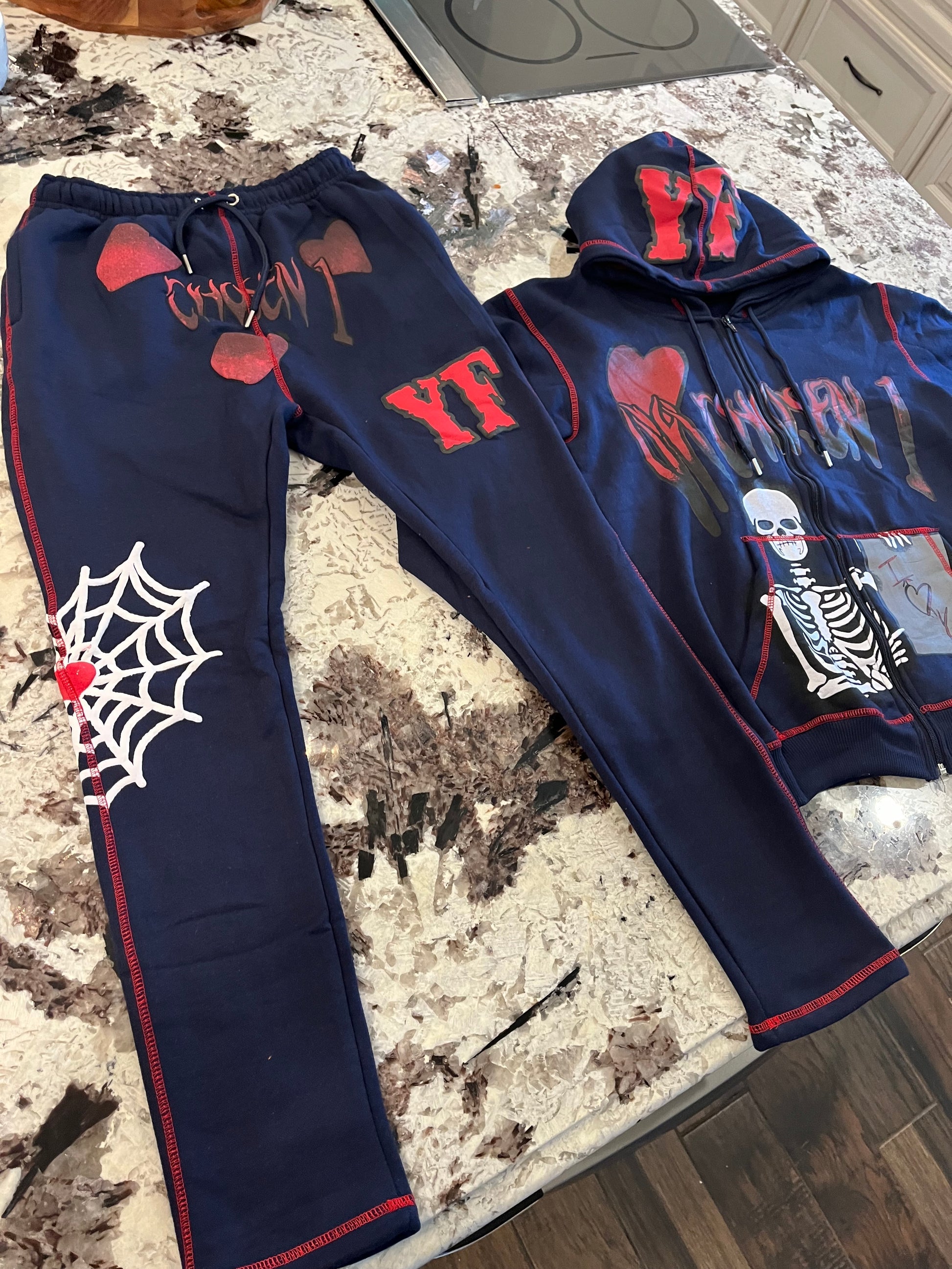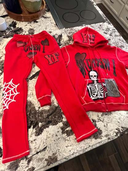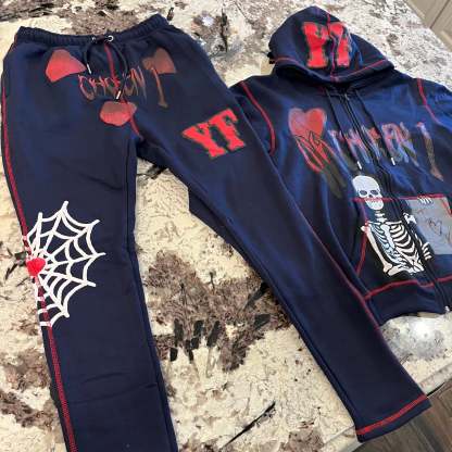 Personalized street style skull zipper hoodie set