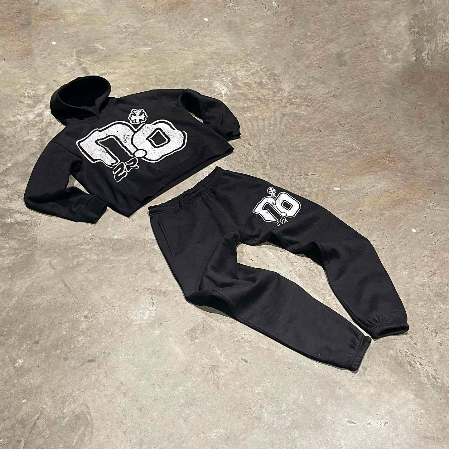 Refuse Printed Casual Street Hoodie Sports Two-Piece Set