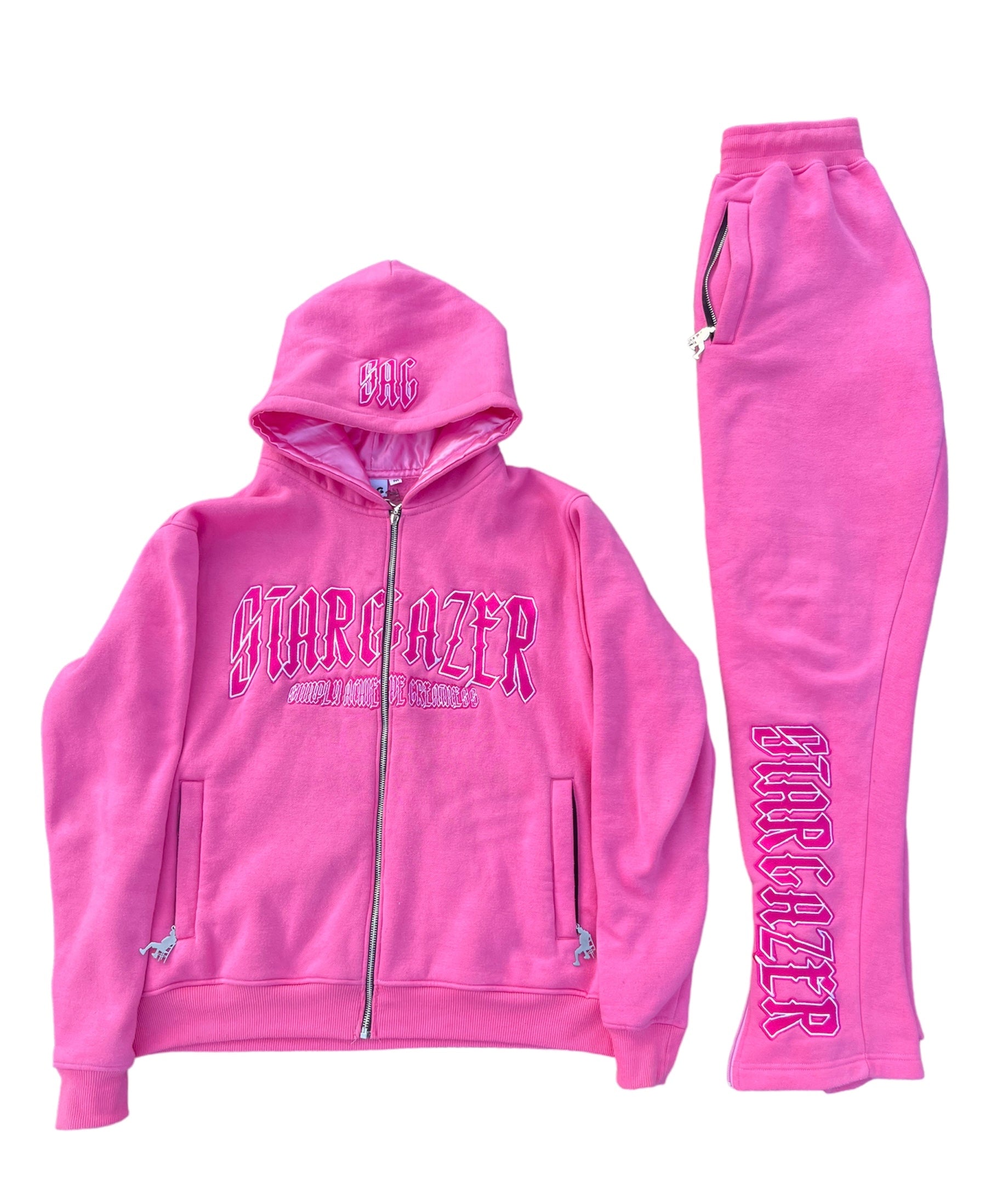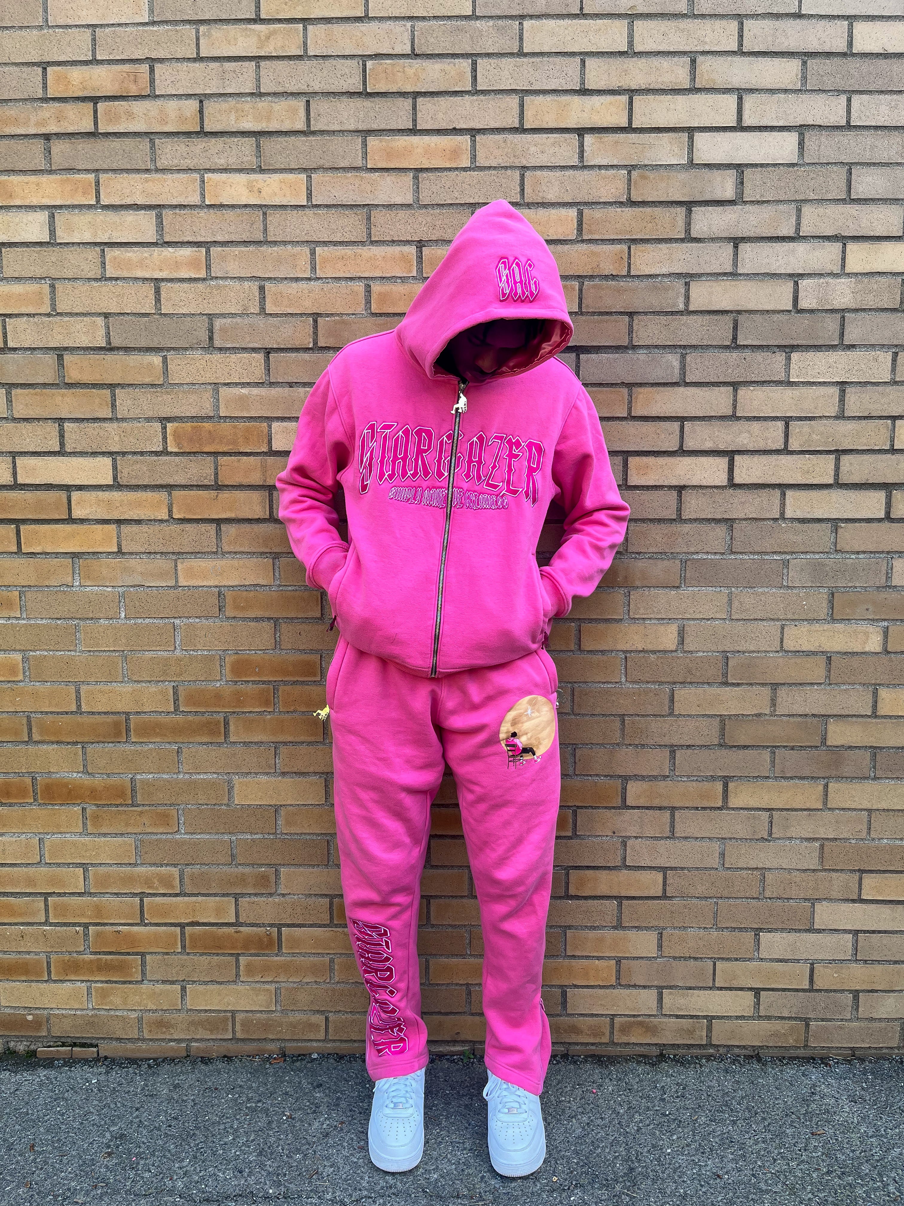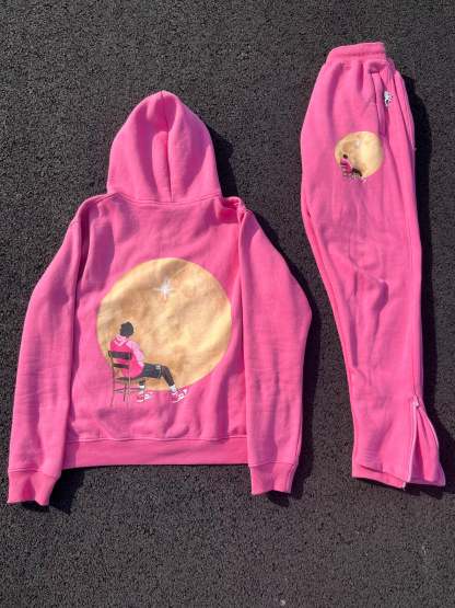 Hip-hop contrast color fashionable casual hoodie set (Pink)