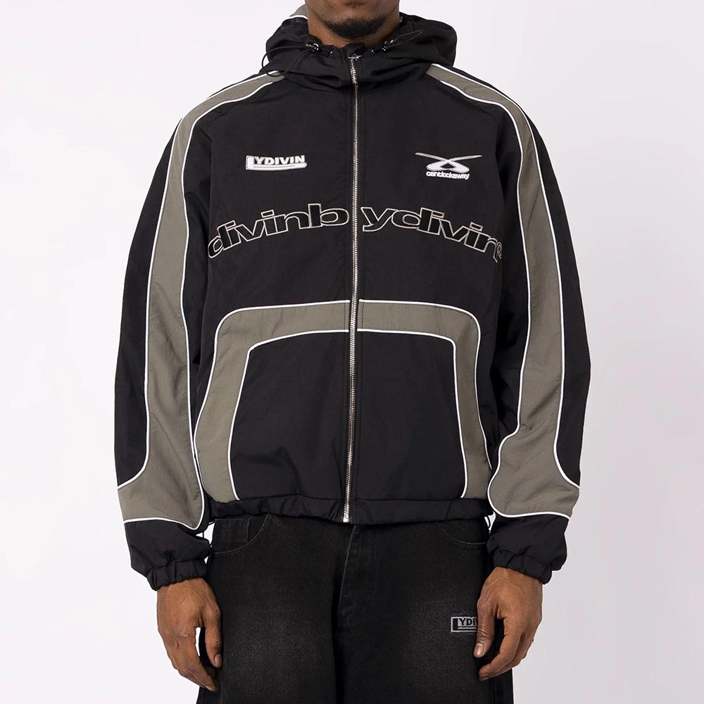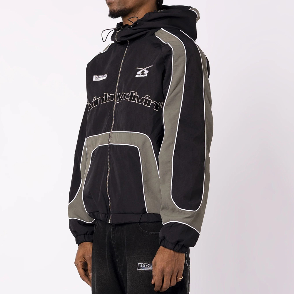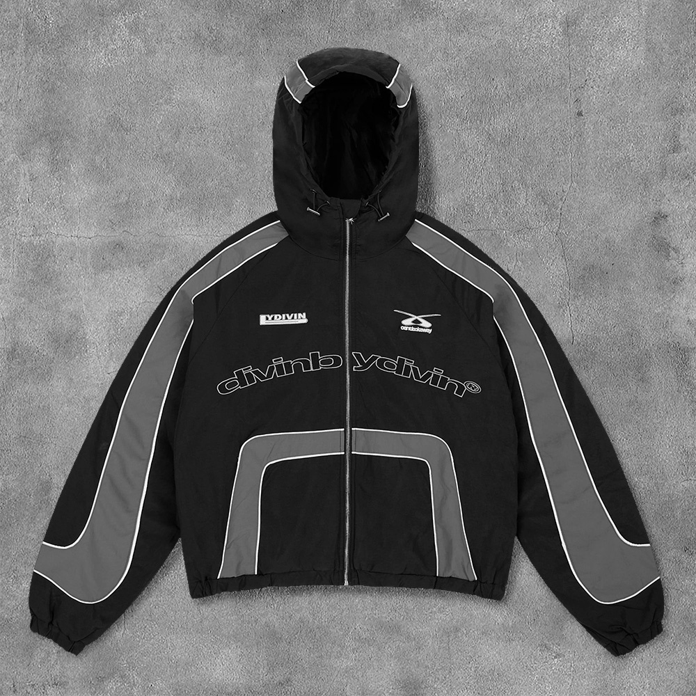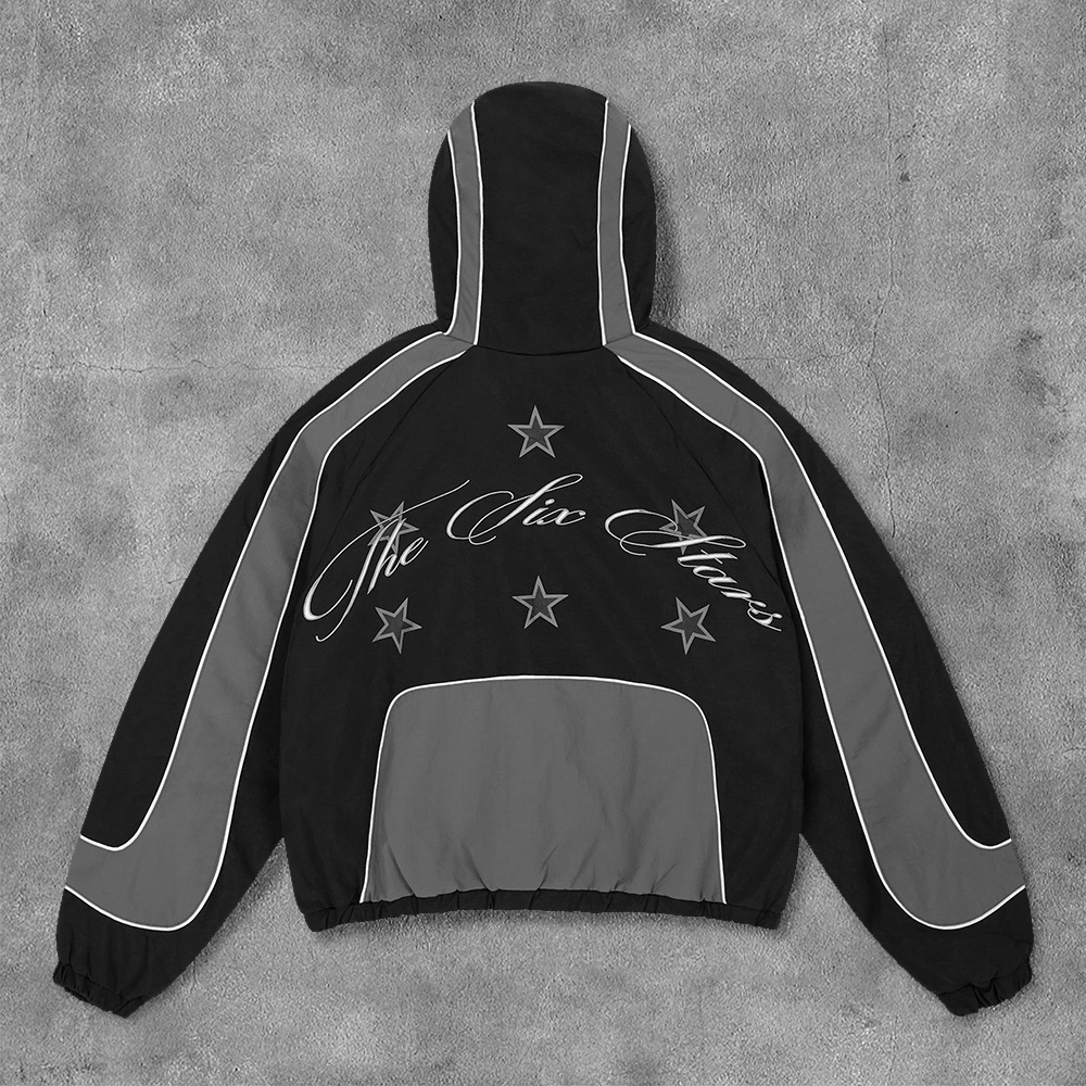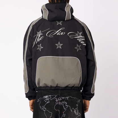 Stylish Color-Blocked Print Long-Sleeved Zipper Hooded Jacket