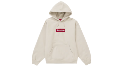 The classic Box Logo Hoodie from Supreme. This time in a clean beige color, with classic red logo and "2024" stitched into the hood.