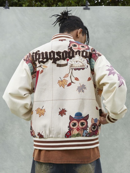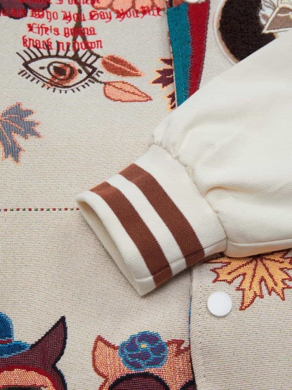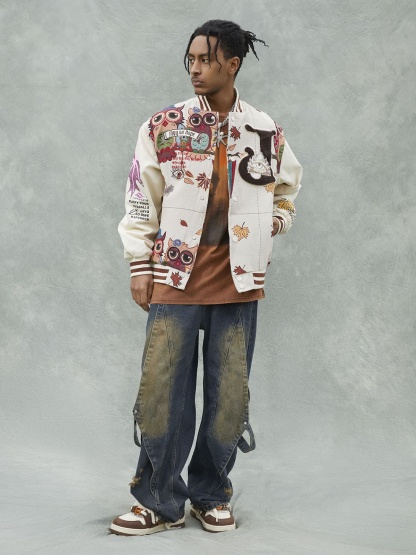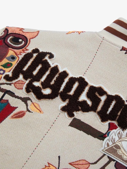 • Detail Features: Embroidered Designs, Patch Details, Ribbed Cuffs and Hem, Zippered Front Closure