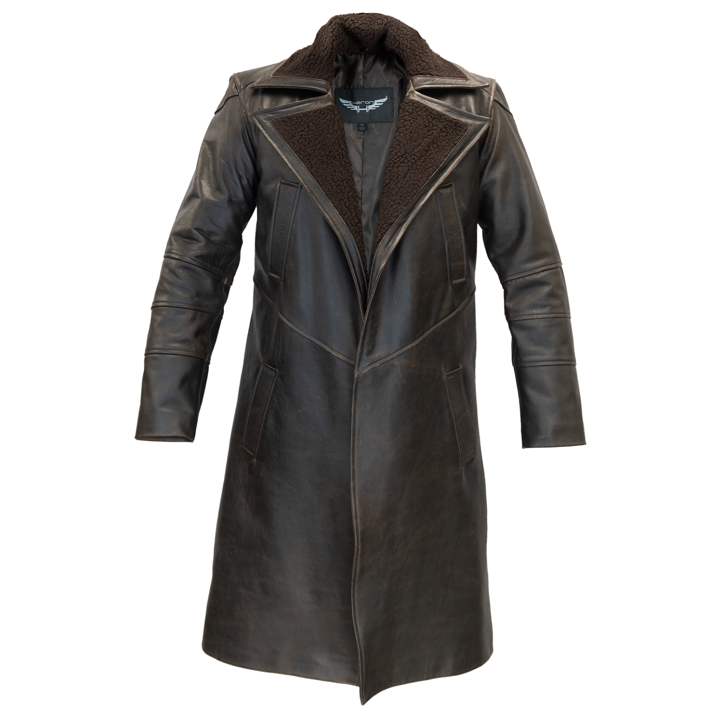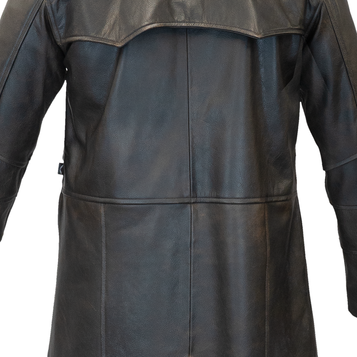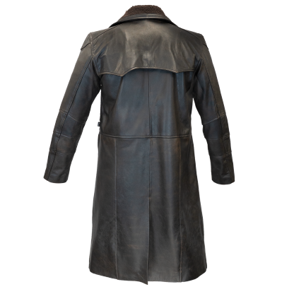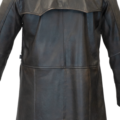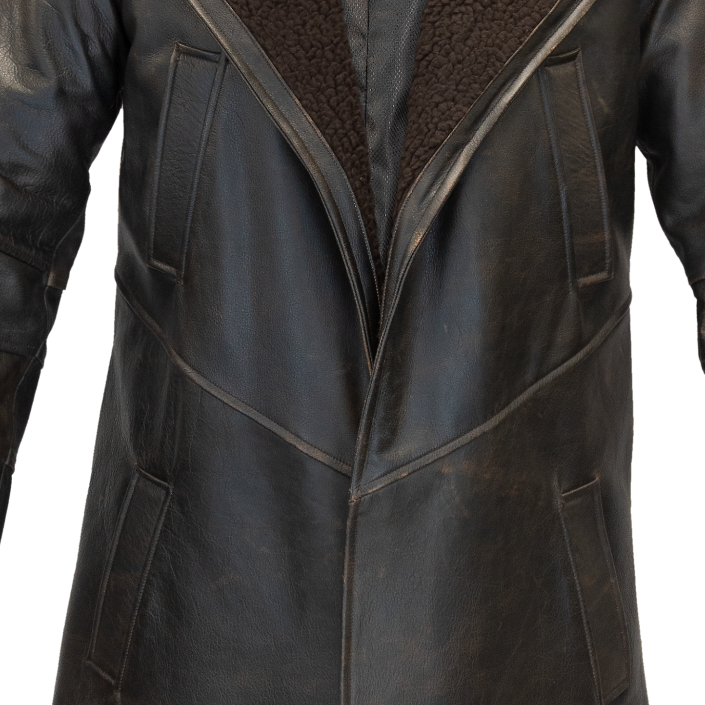 Inspirada en K de Bladerunner 2049, esta gabardina habla sin necesidad de levantar la voz. Su corte largo y cuello forrado impone respeto. Su textura y caída responden al movimiento, creando una silueta que parece salida de otro tiempo.