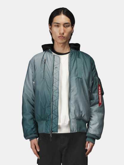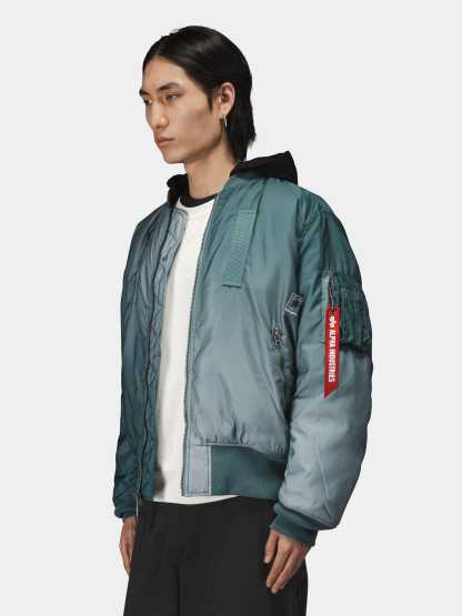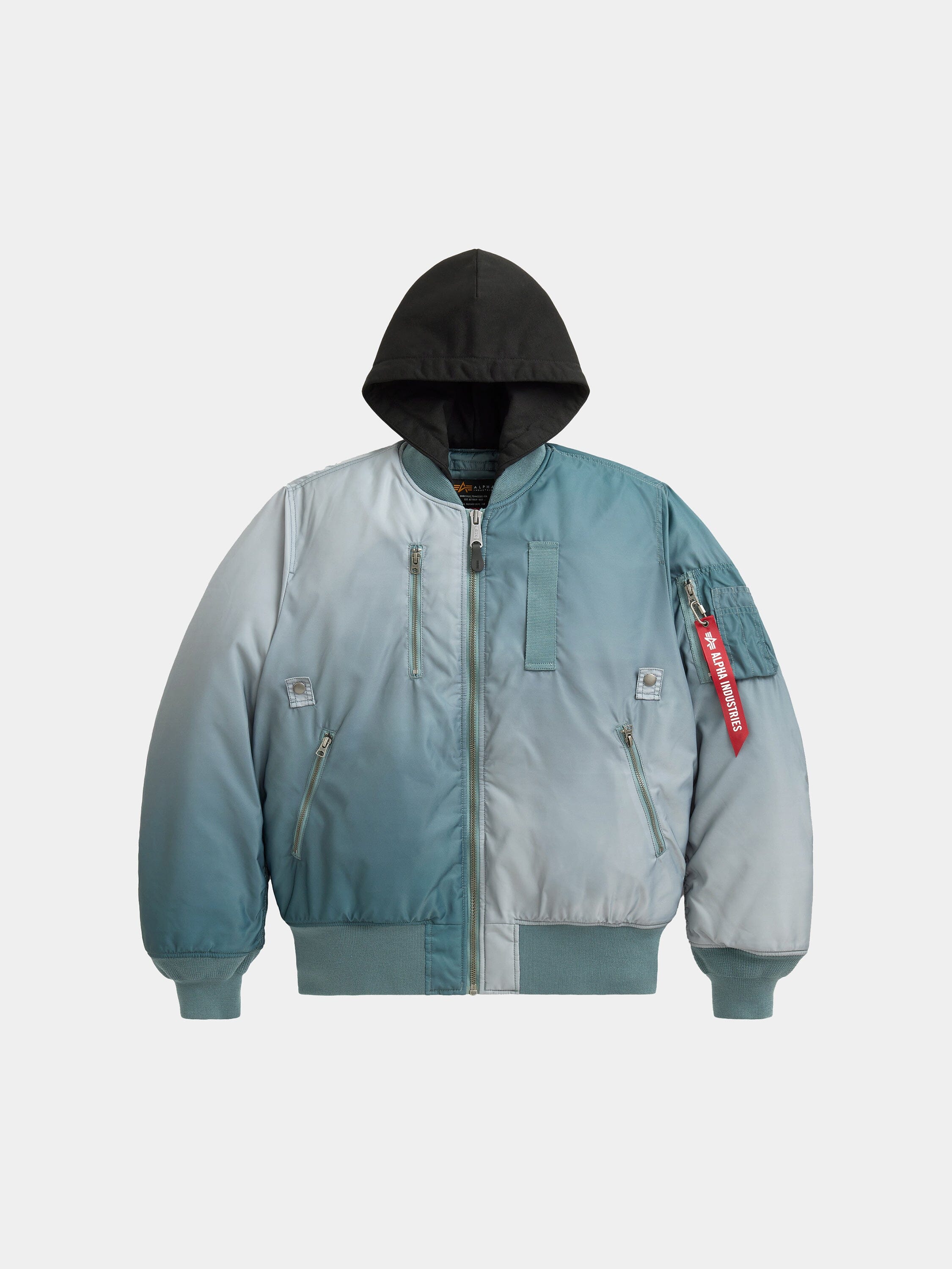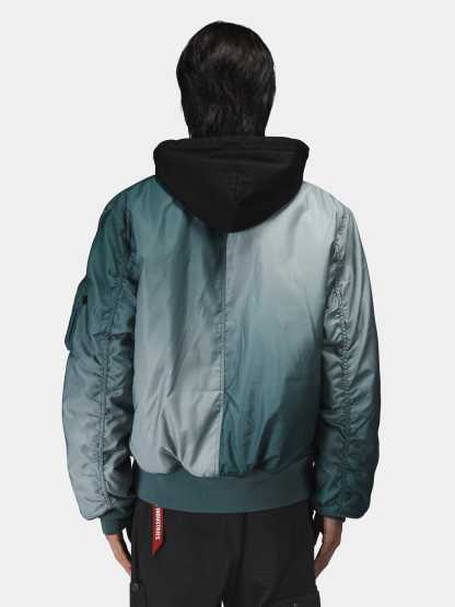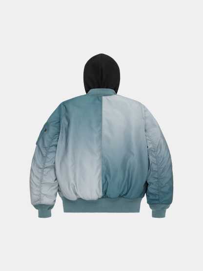 The Gradient Washed Flight Jacket puts a modern twist on a timeless aviation-inspired silhouette. Its shell features a unique gradient print, and a soft French terry hood with adjustable drawcord adds comfort and casual versatility. Designed with two welt pockets, one interior pocket, and a functional sleeve utility pocket with signature red ribbon detail, it blends style with practicality. Rib-knit cuffs, hem, and collar provide a secure fit. Perfect for transitional weather, this jacket is great for layering delivers standout style with everyday wearability.
