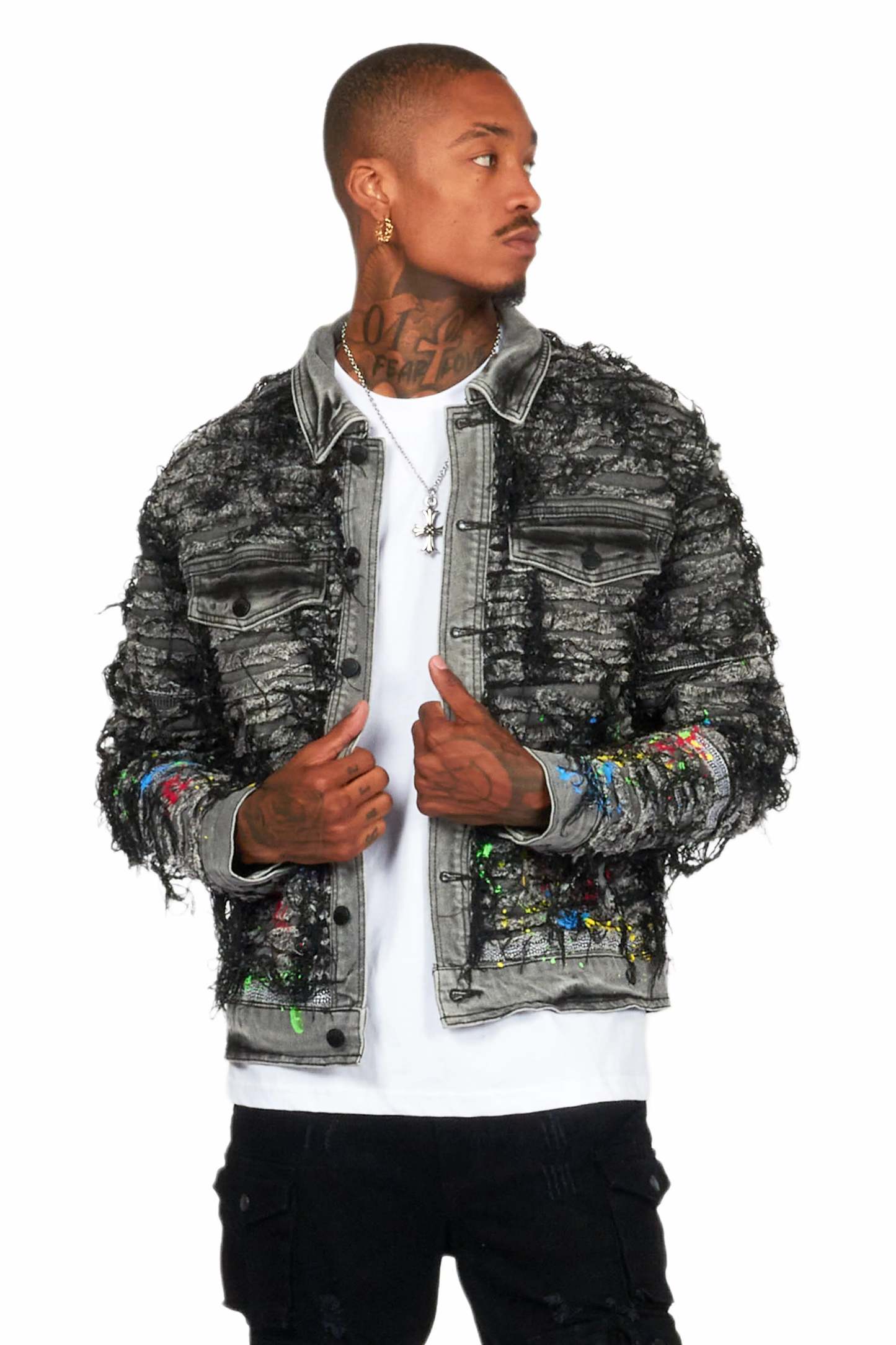 Gagan Black/Grey Painter Denim Jacket