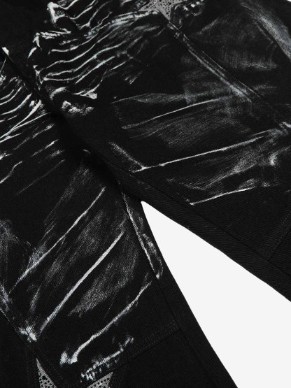 • Design Elements: Distressed patches, star embellishments, wide-leg silhouette